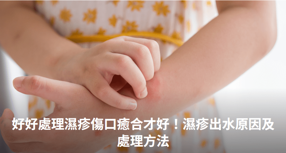 濕疹出水真的讓人好困擾!持續的紅腫、發癢以及緩慢的癒合過程,讓人不知如何是好。當濕疹出水時,通常表示炎症惡化,皮膚屏障已嚴重受損,會伴隨發紅、潰爛等症狀。正確的濕疹傷口處理關鍵在於保持傷口清潔,並有效防止再度感染。御藥堂將在這篇文章中幫助你深入了解濕疹出水原因及處理方法,加速濕疹傷口癒合。 什麼是濕疹出水? 濕疹出水是指當濕疹發作時,皮膚表面滲出透明或淡黃色液體(組織液)。這是濕疹嚴重發作的表現之一,通常還伴隨幾個典型的濕疹症狀。 濕疹出水的典型症狀包括: 濕疹出水原因 濕疹(異位性皮膚炎)通常由遺傳、免疫系統失常和環境刺激等多種因素引發。當皮膚屏障受損時,身體會自動釋放含有血清、白血球及其他免疫反應物質的組織液來修復受損的皮膚。隨著炎症加重,毛細血管通透性增加,導致組織液從血管滲出到皮膚表面,形成「濕疹出水」的情況。 濕疹出水過多的原因通常是炎症進一步惡化,導致組織液持續滲出。這不僅會加劇紅腫和痕癢,還可能延緩濕疹傷口癒合,並增加感染風險。因此,濕疹出水應盡快處理。 如何加速濕疹傷口癒合? 了解濕疹出水原因後,接下來需針對濕疹傷口狀況及嚴重程度做出對應的處理方法,可以按照以下步驟進行。這些步驟適用於破皮潰瘍、出水、紅腫和發癢等症狀,有助於促進濕疹傷口癒合、減少感染風險並緩解不適。 濕疹出水處理方法如下: 濕敏傷口的處理包含清潔、塗抹藥物及補充營養。此外,照護濕敏傷口的重點是保持適當的乾濕平衡,避免外部刺激造成再度感染。御藥堂的《中大中藥傳承濕敏貼》能幫助消紅抗菌、止癢修復,並全面鎖水保濕,非常適合濕敏患者。 御藥堂濕敏貼如何加速濕敏修復? 針對濕敏,御藥堂推出《中大中藥傳承濕敏貼》,旨在改善濕敏(異位性皮膚問題)、皮膚乾癢引起的泛紅及發癢狀況。經香港知名大學中醫中藥研究所臨床證實,《御藥堂濕敏貼》不僅有助舒緩紅脹、止癢並修復傷口,已有 90.5% 的濕敏患者認同有效改善濕敏。 《御藥堂濕敏貼》嚴選天然草本成分,結合多種針對濕敏修復與舒緩的中草本配方,如牡丹皮提取物、金盞花及薄荷,這些成分有效消紅抗菌,能舒緩紅脹、灼熱和痕癢等不適。同時,煙醯胺(維他命 B3)、精氨酸、維他命 E 等成分則有增強皮膚屏障,促進細胞修復,還具有保濕功效,幫助維持皮膚濕潤,促進傷口癒合。 御藥堂濕敏貼四大產品特點 正規濕疹治療搭配輔助護理,快速恢復健康肌膚! 濕疹出水是濕疹嚴重發炎的徵兆,炎症導致組織液滲出到受損皮膚表面,進一步加劇紅腫與不適。了解濕疹出水原因後,應及時採取有效的濕疹出水處理方法,如保持傷口清潔、適當保濕、選擇合適的藥物治療,並避免再次感染,以促進濕疹傷口癒合。除了採取正規治療之外,御藥堂建議濕疹患者尋找可靠的輔助產品來協助處理濕疹傷口,以防止二次感染並加速傷口癒合,達到更全面的護理效果。 **患處嚴重滲液的人士不建議使用《中大中藥傳承濕敏貼》。**